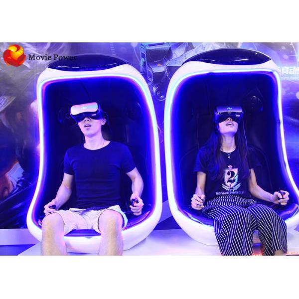 VR egg simulator 2 seats is currently one of the most mature VR experience products.With the 3 DOF servo electric platform, the synchronization of action and the accurate rate is as high as 99.9%, but also can simulate shock blowing, back, leg sweep effects, roate 360 degrees without blind spots, can show the most realistic 3D HD picture, let the experience immersed in a virtual reality environment.